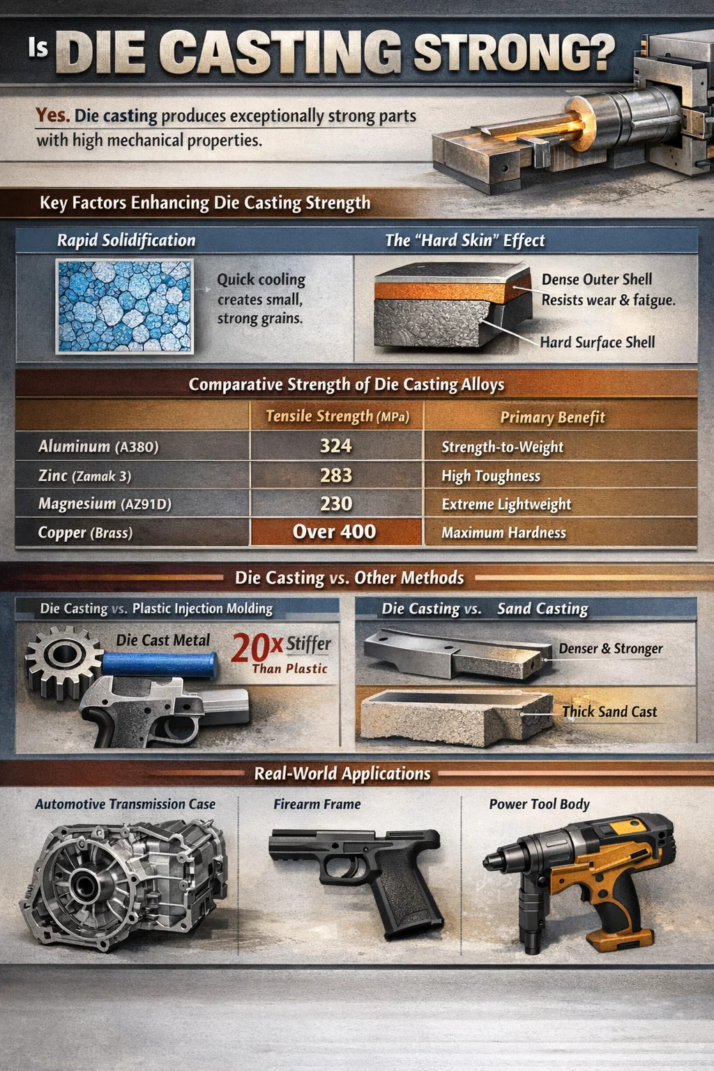 نه همه دایکستینگ فلزات یکسان هستند انتخاب آلیاژ تعیین می کند که آیا قطعه برای ضربه، وزن یا بار کششی خالص بهینه شده است.